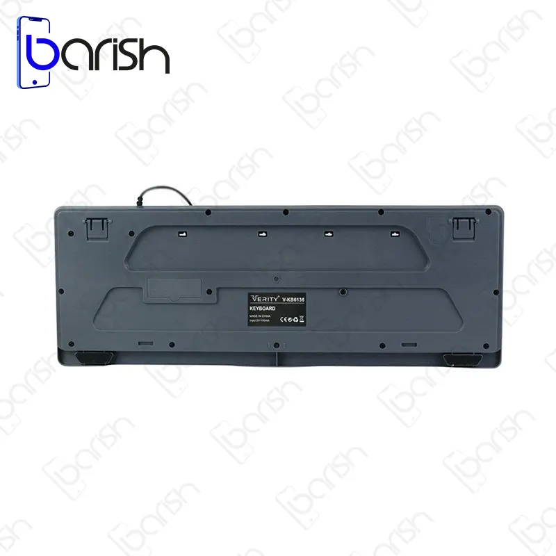 کیبرد وریتی مدل V-KB6136 از نوع سیم دار با طراحی ارگونومیک و با ابعاد 29*166*455 میلی متر و ساختار استاندارد می باشد که مناسب برای کاربری های روزانه، اداری و تایپیست ها است. این کیبرد توسط یک کابل USB با متراژ 150 سانتی متر به کامپیوتر شما متصل می شود. بعد از اتصال کیبرد به کامپیوتر بدون نصب هیچ درایوری می توان به راحتی از کیبرد استفاده کرد. ولتاژ عملیاتی این کیبورد که از کیس دریافت می کند 5ولت و جریان عملیاتی نیز 100 میلی آمپر می باشد. این کیبورد دارای 3 عدد نشانگر LED در سمت راست کیبرد است که وضعیت دکمه های Caps Lock و Num Lock و Scroll به کاربران اطلاع می دهد.