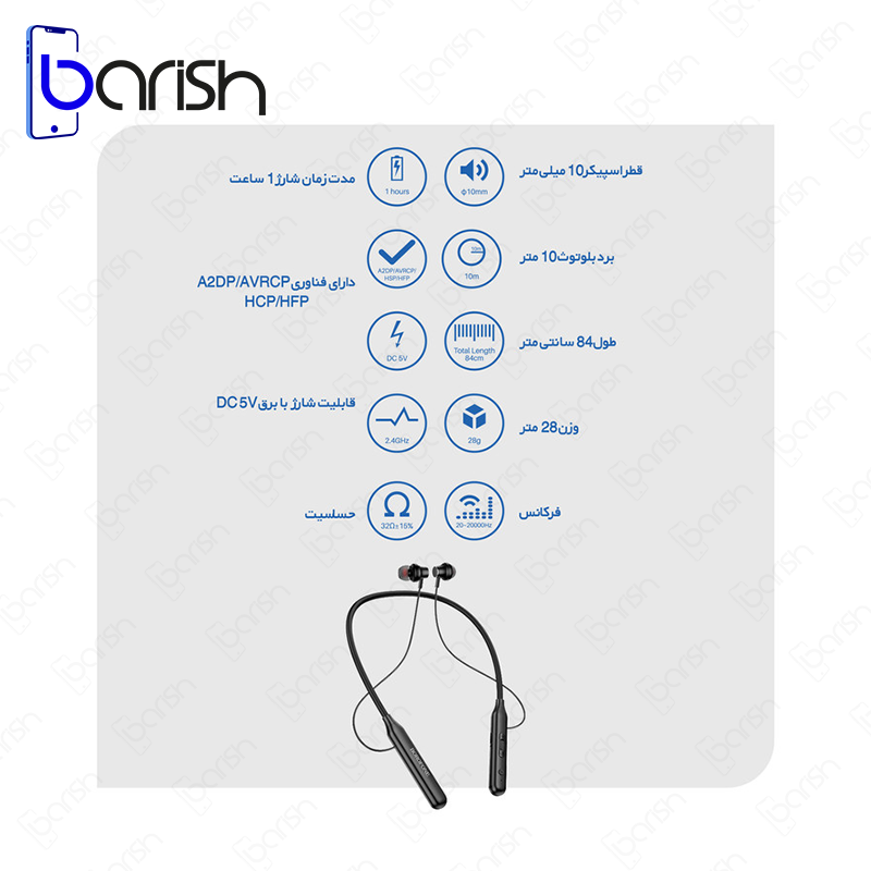 هندزفری بلوتوثی گردنی بروفون مدل BE56 را با ضمانت اصالت و سلامت فیزیکی کالا و گارانتی 6 ماهه پژواک رایانه فرداد می توانید از فروشگاه آنلاین « جانبی باریش » تهیه فرمایید.