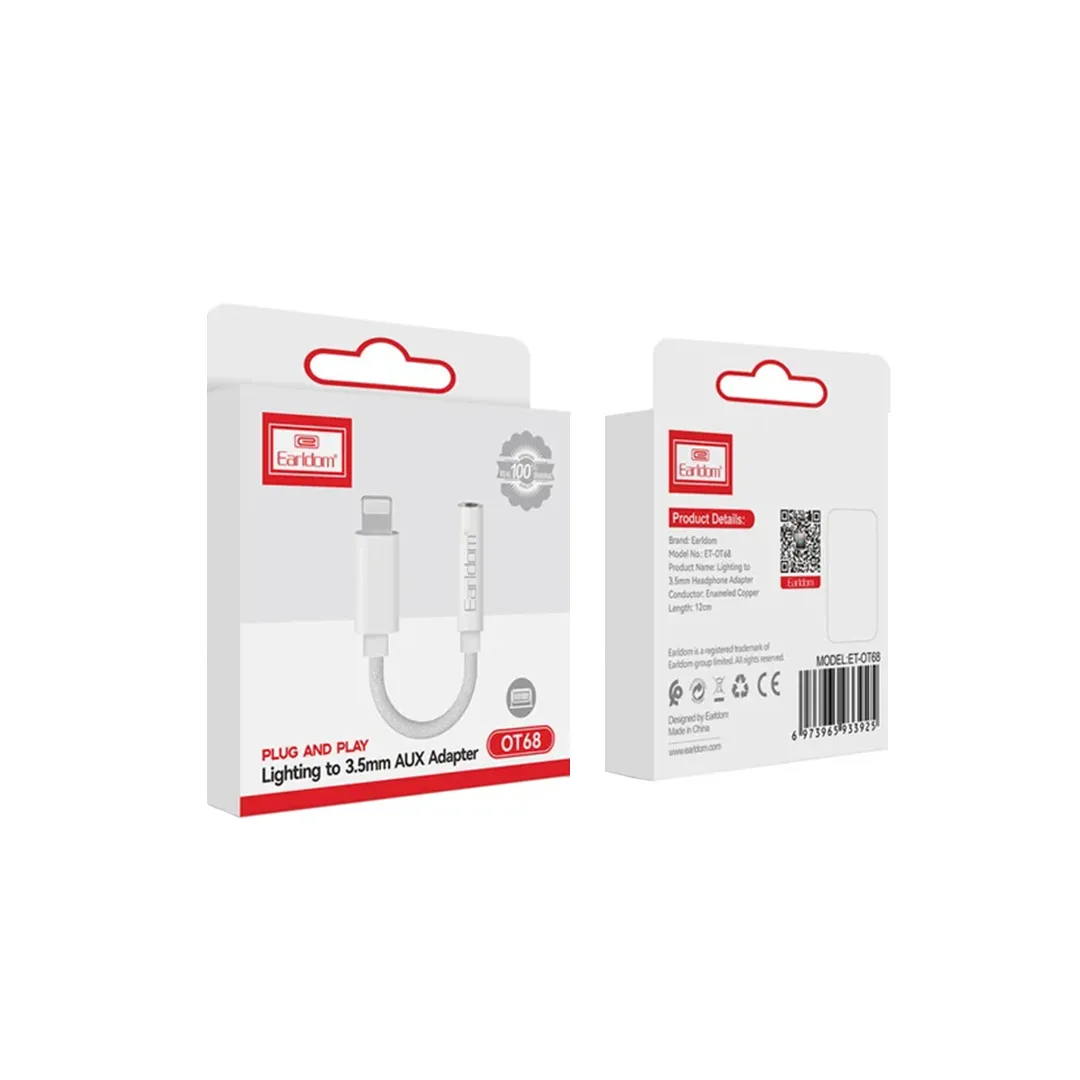کابل تبدیل لایتنینگ به جک 3.5 میلی متری ارلدام مدل OT68 را می توانید با گارانتی اصالت و سلامت فیزیکی کالا و مهلت تست 7 روزه از فروشگاه آنلاین « جانبی باریش » تهیه نمایید.