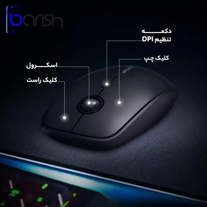 | قابلیت ها | امکان تنظیم DPI / دقت بالای حسگر / مناسب برای انواع کاربری ها / طراحی ارگونومیک / قابل استفاده برای افراد راست و چپ دست / دارای کلید روشن و خاموش |