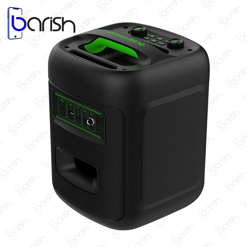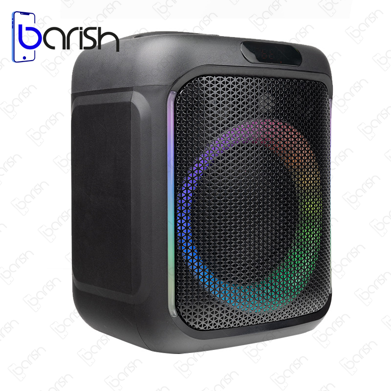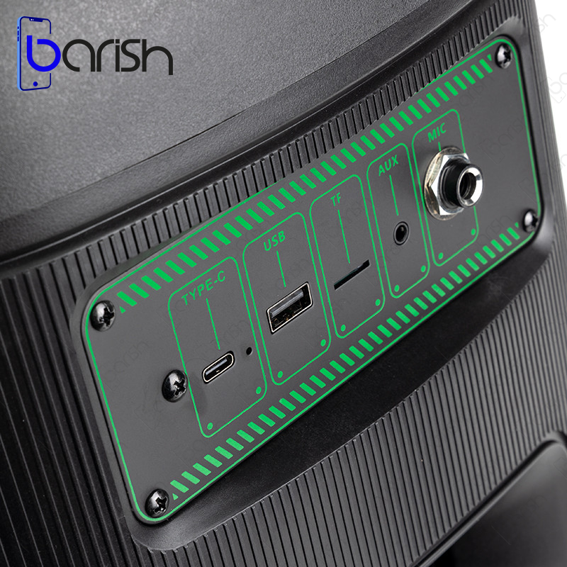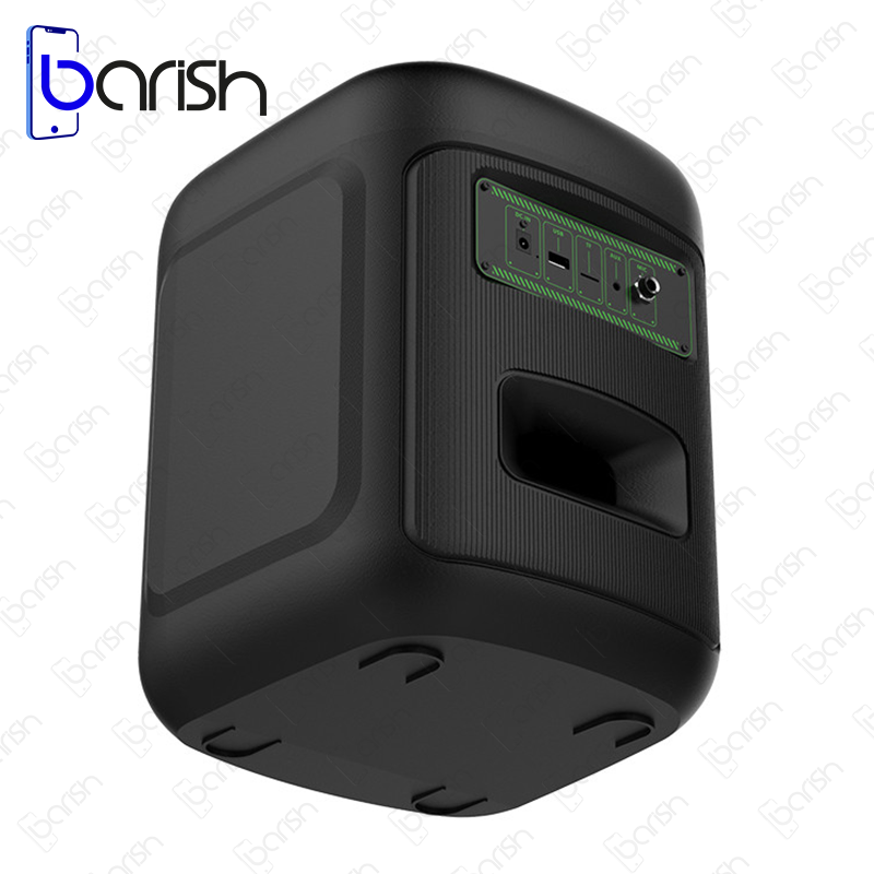 | ویژگی ها | 1 عدد ورودی میکروفون و گیتار / دارای کلید های فیزیکی به منظور مدیریت پخش موسیقی، تنظیم ولوم و … / دارای اکولایزر / نور پردازی های مختلف RGB / دارای دسته به منظور سهولت در حمل و نقل / نمایشگر دیجیتالی |