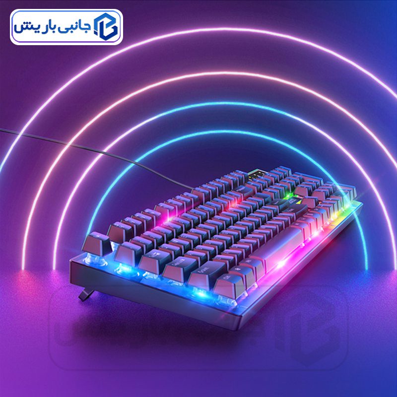 قابلیت ها | طراحی ارگونومیک / دارای نور 3 رنگ رنگین کمانی با افکت های نورانی / کیبورد دارای کلید های مولتی مدیا / کلید های راحت / ضد آب |