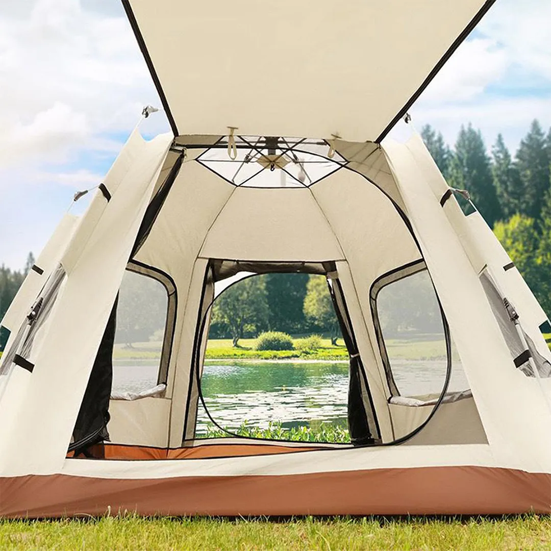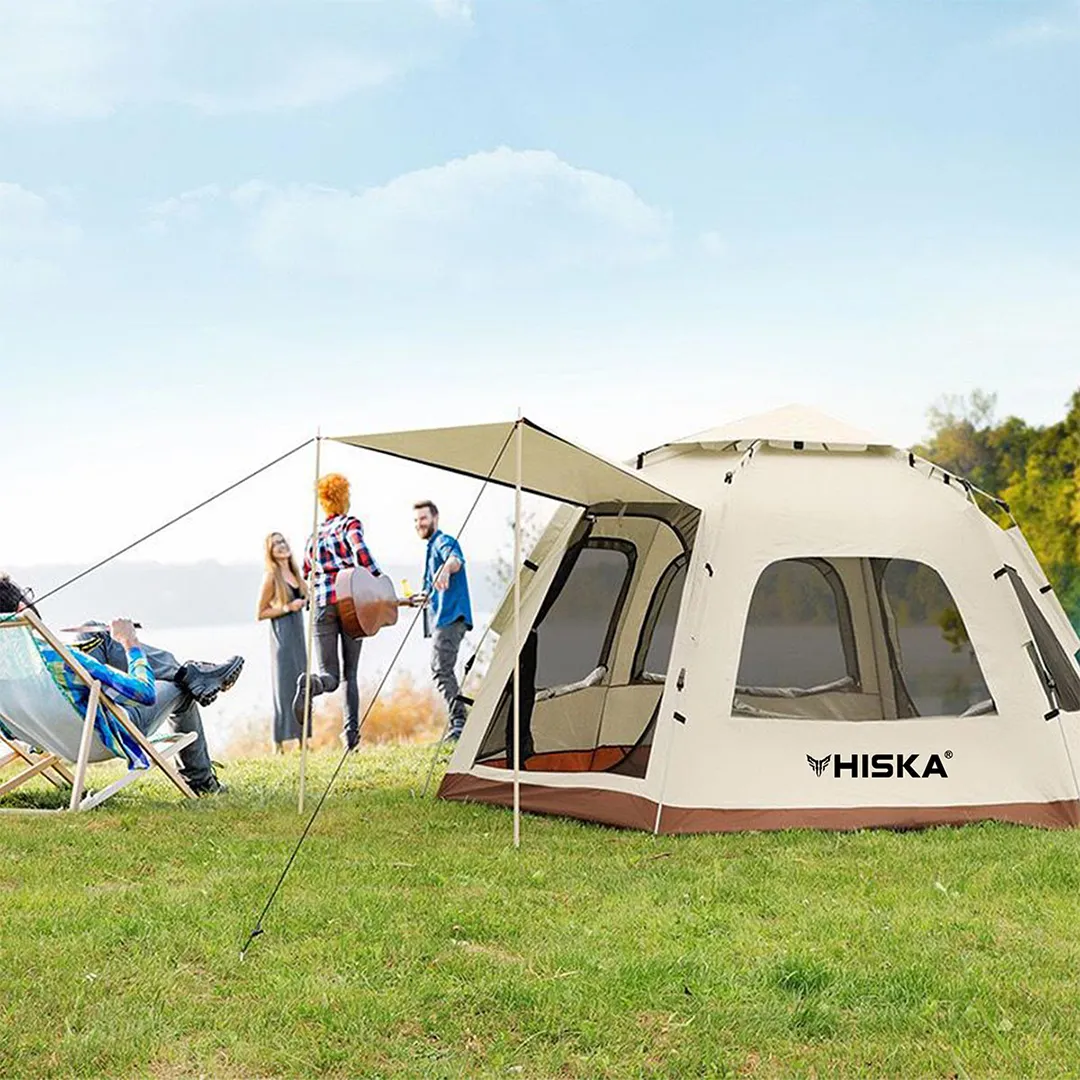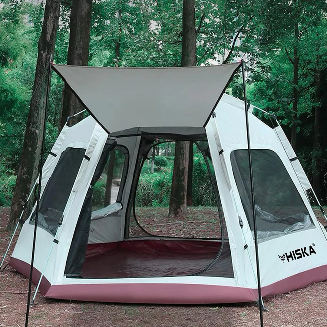 | سایر قابلیت ها | کابین ضدآب، مقاوم در برابر باد و اشعه ماوراء بنفش / طراحی ششضلعی بزرگ با ظرفیت ۸-۵ نفر / جنس پارچه بیرونی: آکسفورد ۲۱۰D با پوشش نقرهای – جنس پارچه داخلی: آکسفورد ۲۱۰D با پوشش نقرهای / جنس میلهها: فایبرگلاس ۸.۵ میلیمتری با سیستم فنری خودکار / وزن چادر: ۵.۱ کیلوگرم |