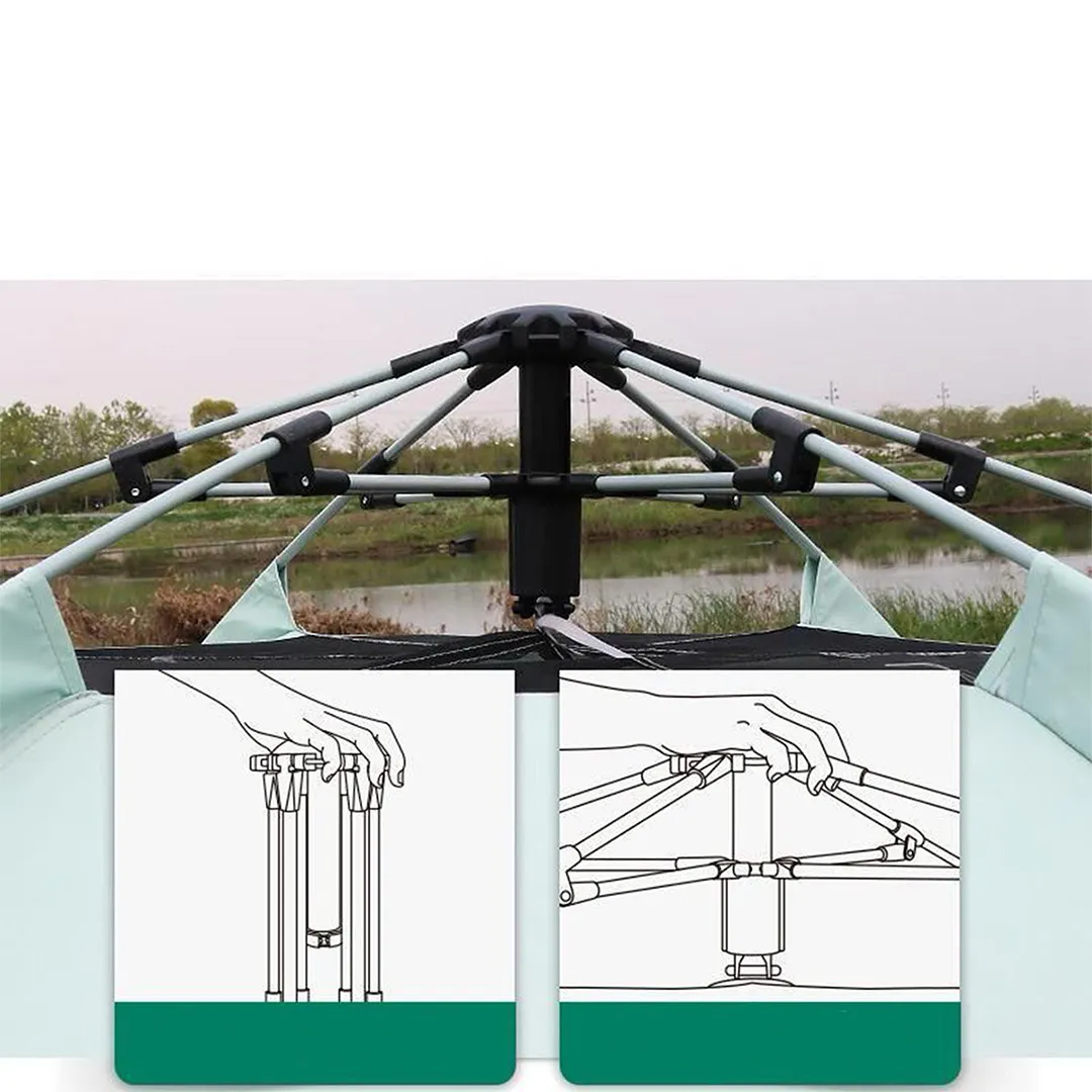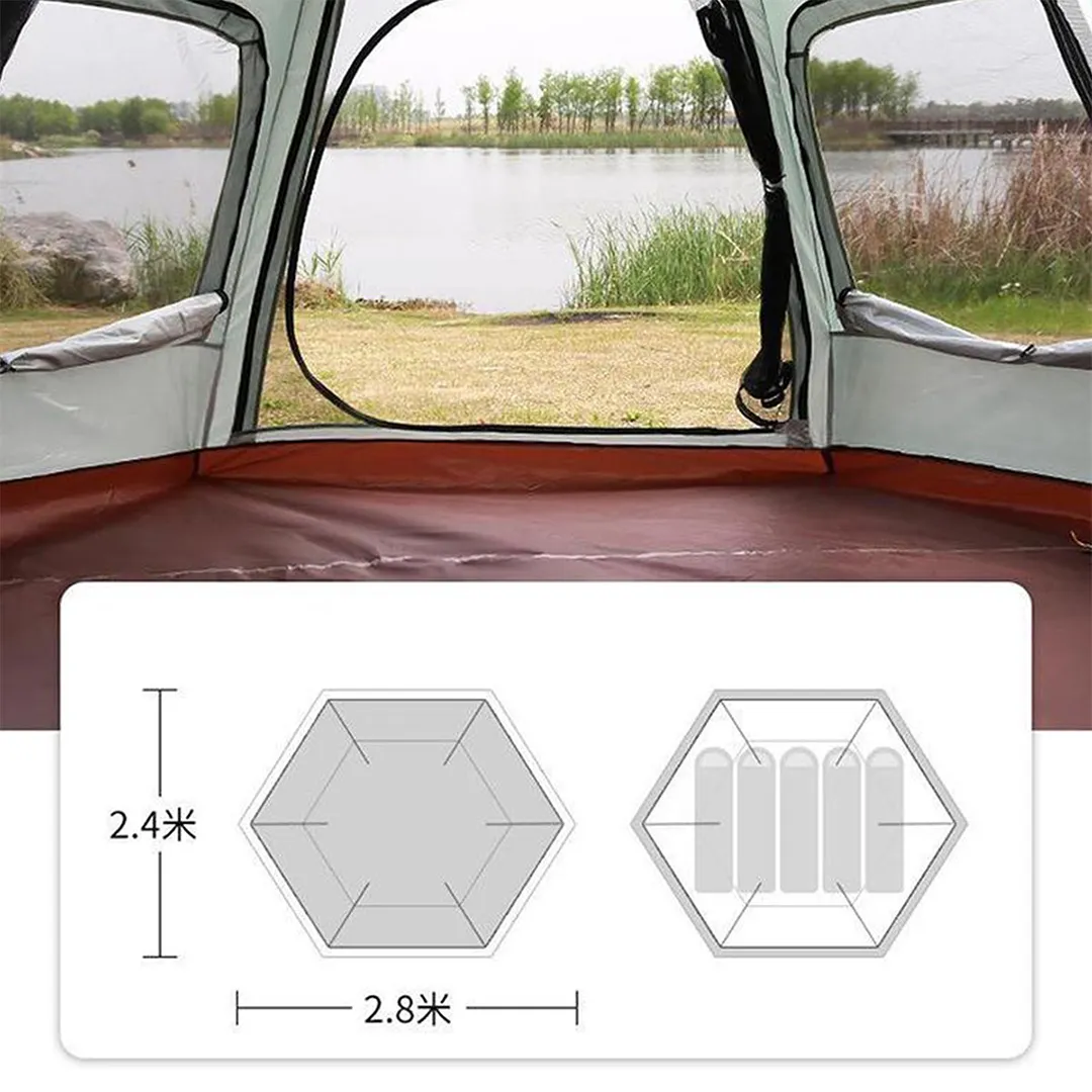 | سایر قابلیت ها | کابین ضدآب، مقاوم در برابر باد و اشعه ماوراء بنفش / طراحی ششضلعی بزرگ با ظرفیت ۸-۵ نفر / جنس پارچه بیرونی: آکسفورد ۲۱۰D با پوشش نقرهای / جنس پارچه داخلی: آکسفورد ۲۱۰D با پوشش نقرهای / جنس میلهها: فایبرگلاس ۸.۵ میلیمتری با سیستم فنری خودکار / وزن چادر: ۵.۱ کیلوگرم |