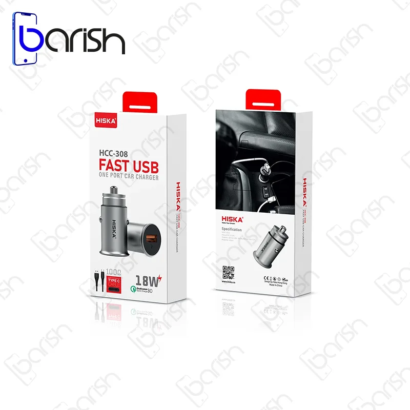 شارژر فندکی 18واتی فست شارژ هیسکا مدل HCC-308 از بدنهای آلومینیومی ساخته شده است که علاوه بر استحکام و مقاومت بالا ، گرمای دستگاه را به خوبی دفع میکند . این شارژر در رنگ نقرهای به بازار عرضه شده است و ظاهری زیبا و شیک دارد . این شارژر دارای یک درگاه خروجی USB است و میتواند دستگاههای مختلفی مانند گوشیهای هوشمند ، تبلتها ، پاوربانکها و … را شارژ کند .