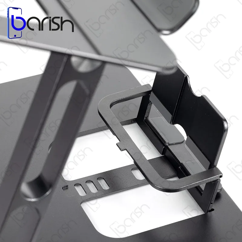 | ویژگی ها | استند مجزا برای موبایل و تبلت / قابلیت تنظیم ارتفاع و زاویه / دارای پد سیلیکونی در زیر پایه ها برای عدم لغزش / دارای پد سیلیکونی در زیر لپ تاپ برای جلوگیریی از لغزش / تبادل هوای عالی برای جلوگیری از داغ شدن / دارای محل اختصاصی نگهداری تلفن همراه |