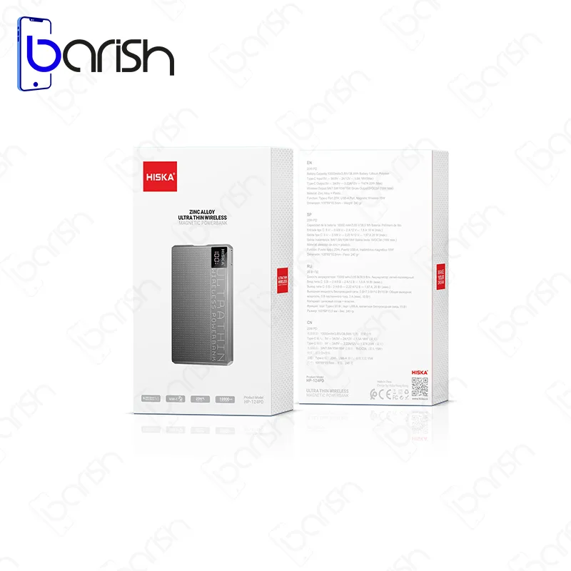 شما میتوانید پاوربانک وایرلس 10000 میلی آمپر هیسکا مدل HP-124PD را با بهترین قیمت و کیفیت از فروشگاه آنلاین «جانبی باریش» تهیه فرمایید.