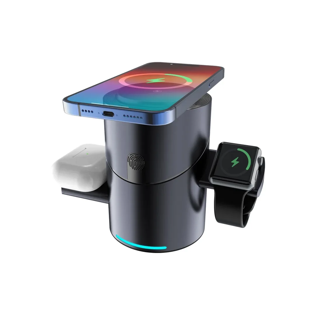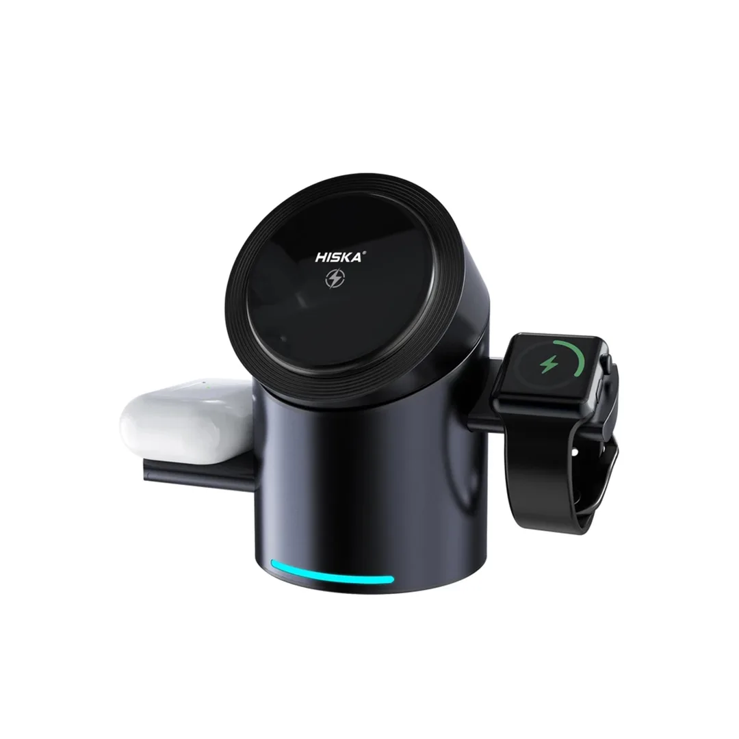 هولدر و شارژر بی سیم گوشی موبایل هیسکا مدل HK-2351W دارای یک عدد کابل Type-C و سه مدل سری شارژ ( آیفون و اندروید ) می باشد .