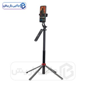 | ویژگی ها | قابلیت باز شدن پایه با ساختار چتری و تبدیل به سه پایه برای استفاده ثابت / ریموت کنترل با پشتیبانی از سیستم عامل اندروید و آیفون / ریموت با باتری داخلی و قابلیت شارژ /عکاسی چندگانه / قابلیت چرخش عمودی و افقی / قابلیت چرخش 360 درجه محور اصلی |