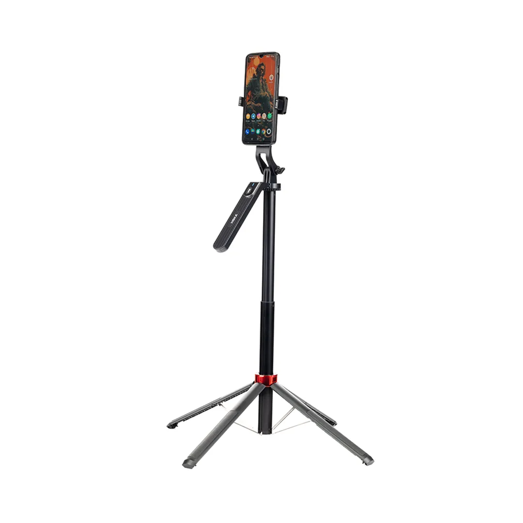 | ویژگی ها | قابلیت باز شدن پایه با ساختار چتری و تبدیل به سه پایه برای استفاده ثابت / ریموت کنترل با پشتیبانی از سیستم عامل اندروید و آیفون / ریموت با باتری داخلی و قابلیت شارژ /عکاسی چندگانه / قابلیت چرخش عمودی و افقی / قابلیت چرخش 360 درجه محور اصلی |