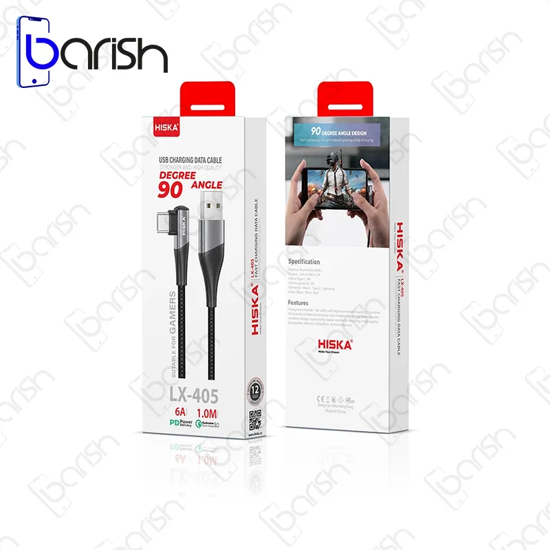 علاوه بر این کانکتور تایپ سی کابل شارژ هیسکا مدل LX-405 با زاویه 90 درجه طراحی شده که آن را به یک گزینه عالی برای گیمر ها تبدیل نموده تا براحتی بتوانند هنگام بازی ، گوشی هوشمند خود را شارژ نمایند به گونه ای کابل شارژ مزاحمتی برای عملکرد آنها ایجاد نکند .