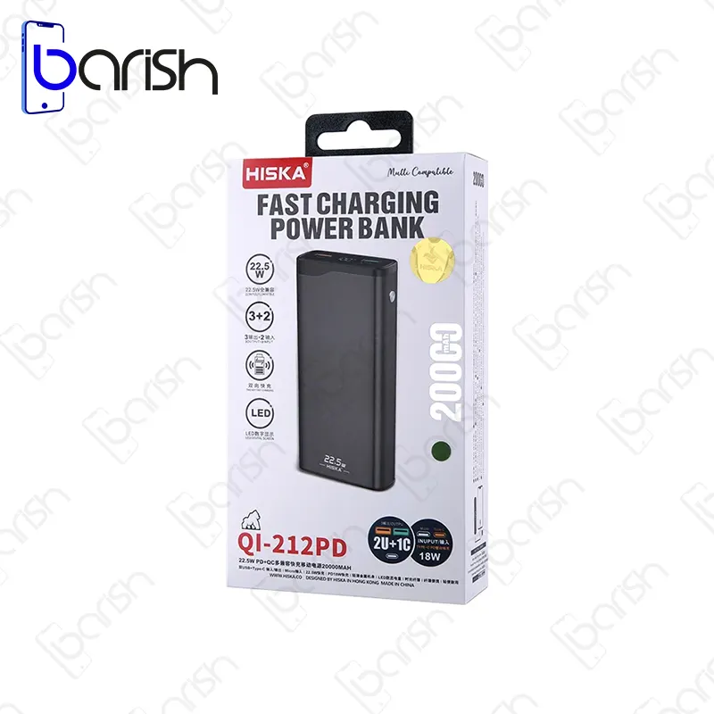 پاوربانک 20000 میلی آمپر هیسکا مدل QI-212PD یک پاوربانک با ظرفیت بالا و قابلیت شارژ سریع است که میتواند به خوبی نیازهای کاربران را برطرف کند. در ادامه به ویژگی های این محصول می پردازیم .