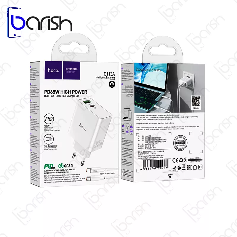 شارژر دیواری 65 وات هوکو مدل C113A را با گارانتی اصالت و سلامت فیزیکی کالا و گارانتی 3 ماهه می توانید از فروشگاه آنلاین « جانبی باریش » تهیه فرمایید.