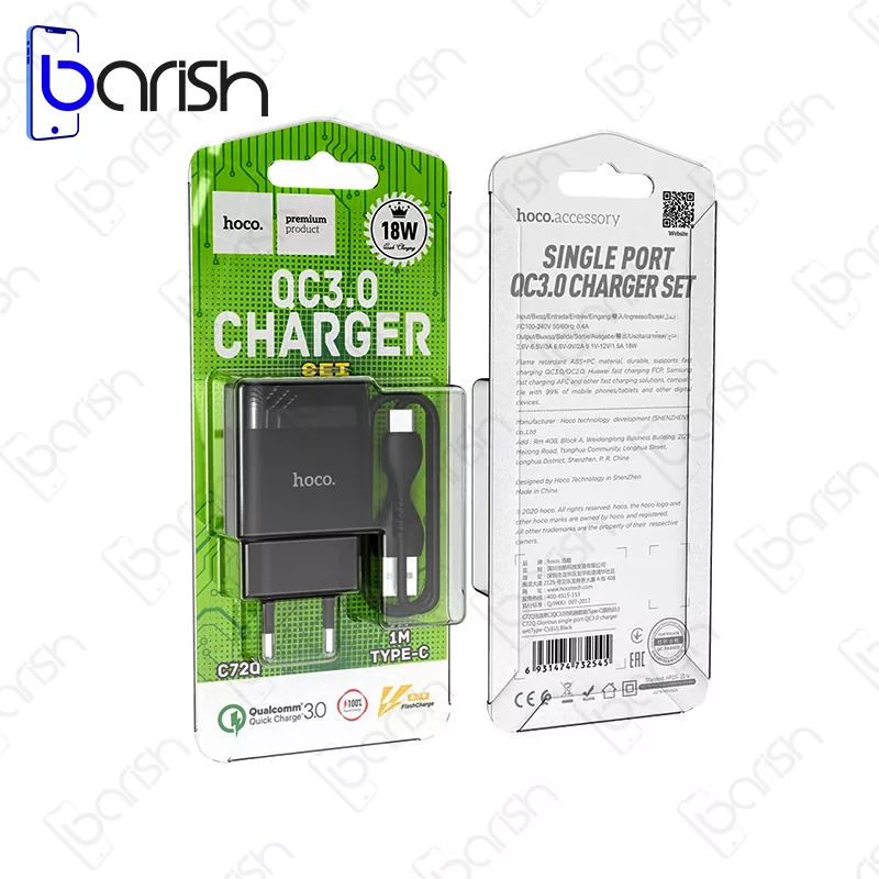 شارژر دیواری 18 واتی هوکو مدل C72Q QC3.0 با کابل همراه تایپ C، از برق متناوب شهری با ولتاژ 100-240 ولت برخوردار است و میتواند ولتاژ متفاوت را به نسبت دستگاه در حال شارژ ارائه دهد. همچنین این محصول از شارژ فوق سریع با فناوری Quick 3.0 برخوردار است و میتواند در کمترین زمان تلفن همراه شما را شارژ کند. این محصول علاوه بر این فناوری از سایر فناوری های شارژ سریع همچون QC2.0 و FCP و AFC نیز پشتیبانی می کند.