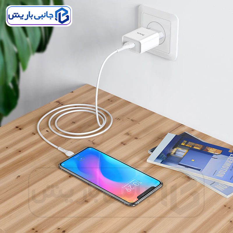 این شارژر دیواری هوکو دارای دوشاخه استاندارد دو پین متناسب با پریزهای ایرانی است . همچنین این محصول دارای ساختار مقاوم از جنس پلاستیک فشرده ABS و پلی کربنات است و می تواند در برابر ضربه و حرارت بالا مقاوم باشد . کابل تایپ سی این محصول نیز از کیفیت بالایی برخوردار است و دارای طول مناسب ا متری می باشد و در برابر خمیدگی و کشش مقاومت بالایی دارد.