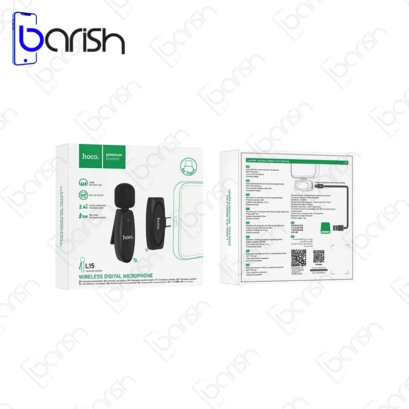 میکروفون یقه ای بلوتوثی تایپ سی هوکو مدل L15 را می توانید با تضمین اصالت و سلامت فیزیکی کالا و گارانتی 12 ماهه « پژواک » با قیمت مناسب و کیفیت بالا از « فروشگاه جانبی باریش » تهیه نمایید .