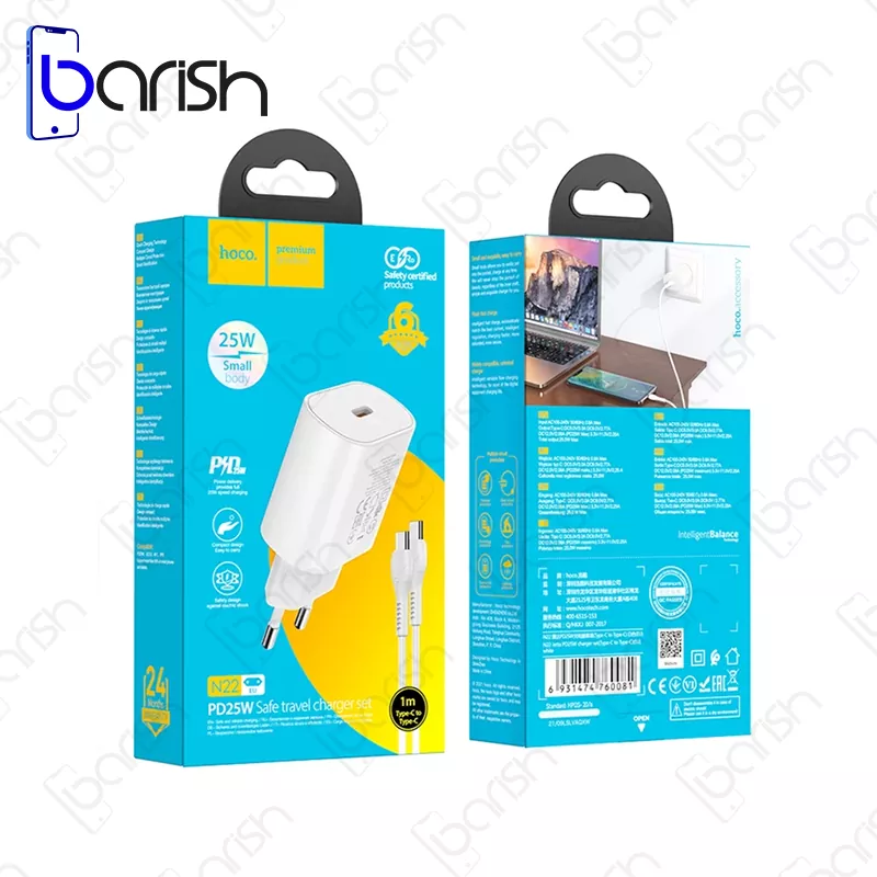 HOCO N22 25W Charger With Type-C to Type-C Cable