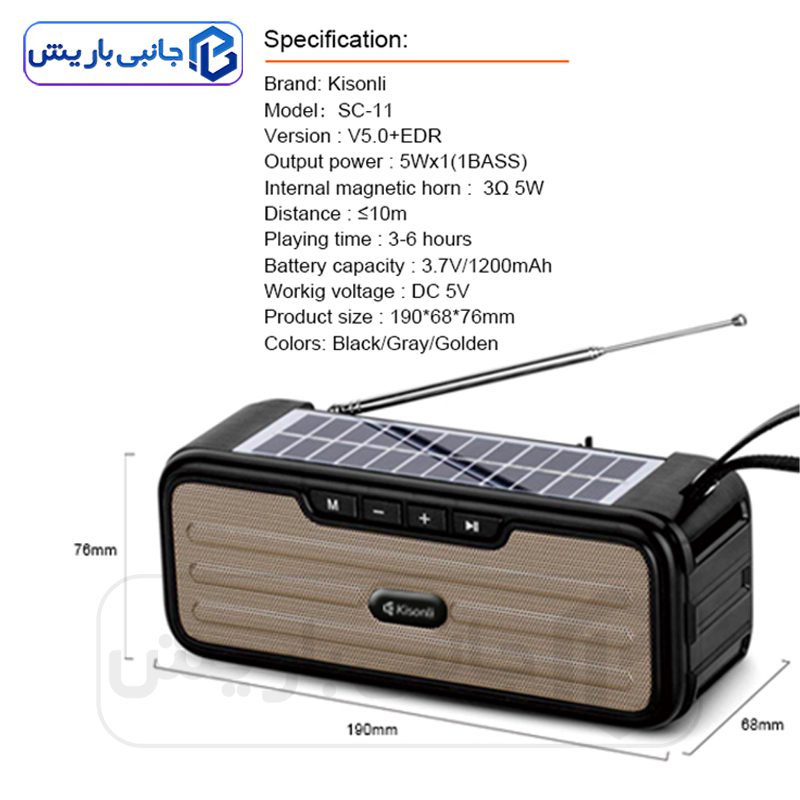 اسپیکر بلوتوثی Kisonli SC-11 را با تضمین اصالت و سلامت فیزیکی کالا و مهلت تست 3 روزه می توانید با قیمت مناسب از فروشگاه آنلاین « جانبی باریش » تهیه نمایید.