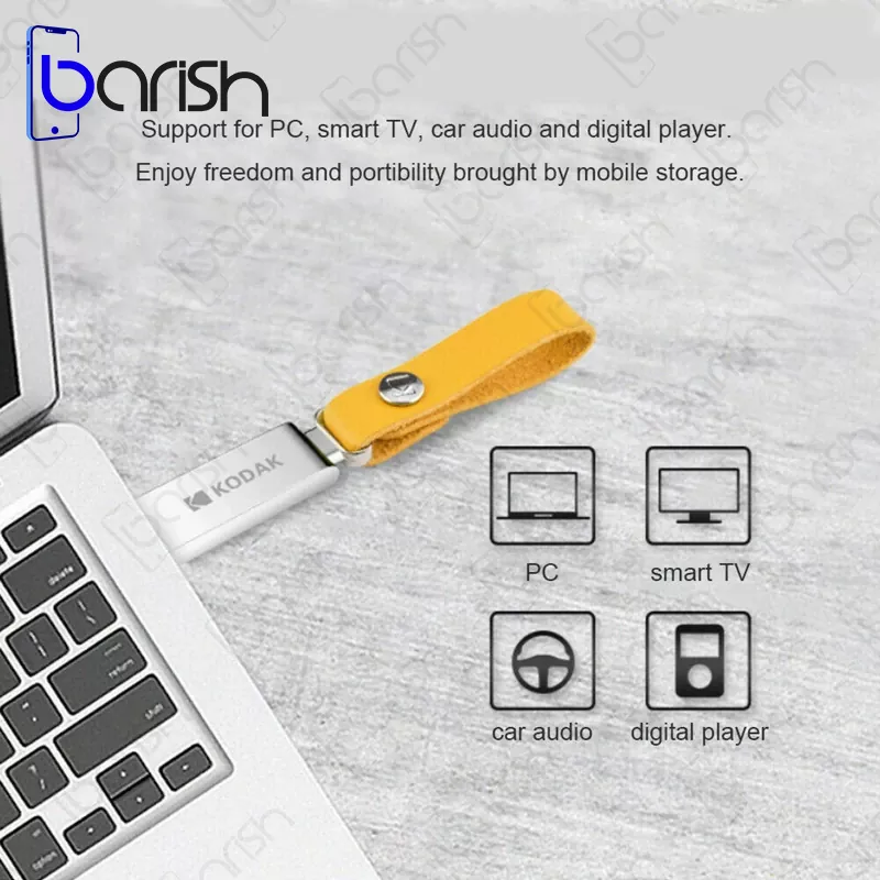 بنابراین میتوانید آن را به راحتی به کامپیوترها، لپتاپها، تلفنهای همراه، تبلتها و سایر دستگاهها متصل کنید و اطلاعات را به آنها انتقال دهید. فلش مموری کداک K122 همچنین مقاوم در برابر رطوبت، گردوغبار و ضربه است. بنابراین، میتوانید آن را در شرایط نامساعد و محیطهایی که ممکن است با رطوبت، گرد و غبار یا ضربه مواجه شود، استفاده کنید بدون اینکه نگرانی برای از بین رفتن دادههایتان داشته باشید. همچنین، فلش مموری کداک K122 دارای بندی است که به شما امکان حمل و نقل آسان و ایمن آن را فراهم میکند.