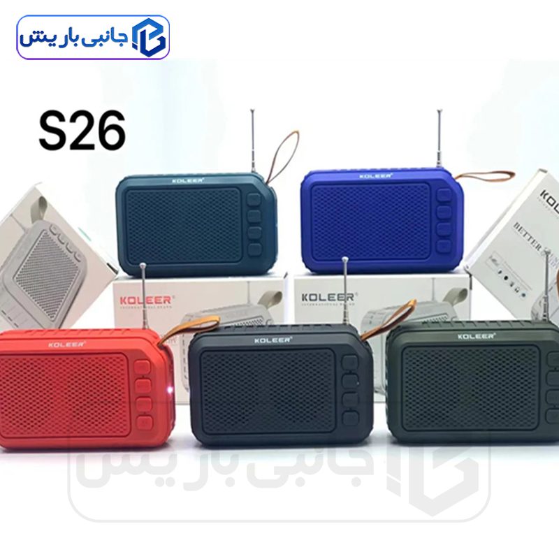 اسپیکر بلوتوثی Koleer مدل S26 ( فلش خور – رم خور ) را با تضمین اصالت و سلامت فیزیکی کالا و گارانتی تست 3 روزه از فروشگاه آنلاین جانبی باریش با قیمت مناسب و کیفیت بالا به آسانی تهیه نمایید.