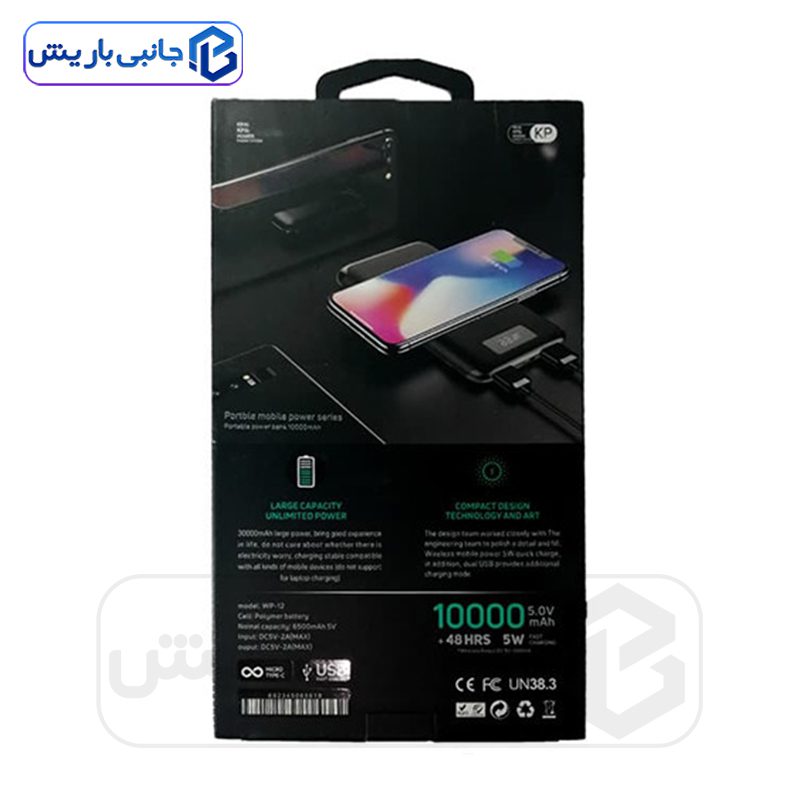 پاوربانک وایرلس 10000 میلی آمپر کی پی مدل WP12 را با تضمین اصالت و سلامت فیزیکی کالا و مهلت تست 3 روزه از فروشگاه آنلاین « جانبی باریش » با قیمت مناسب تهیه فرمایید.