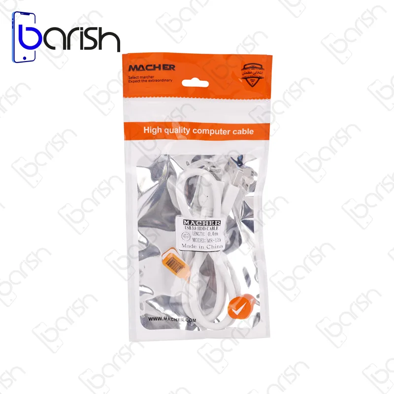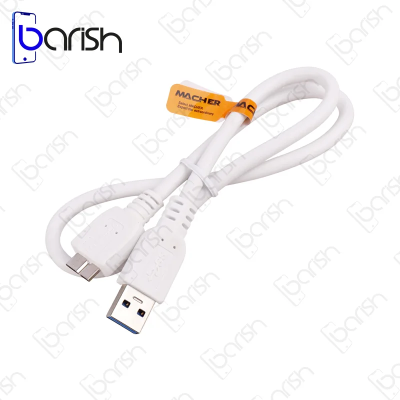 کابل هارد اکسترنال در واقع شاهراه انتقال اطلاعات از هارد به تلویزیون، لپ تاپ و کامپیوتر است. یکی از بهترین و با کیفیت ترین کابل های هارد اکسترنال موجود در بازار ، کابل هارد Macher می باشد . نوع کانکتور این کابل USB3.0 و انتقال دهنده آن micro B است.