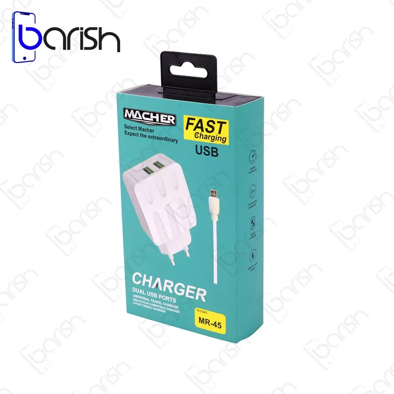 شارژر دیواری 12 واتی مچر مدل MR-45 همراه با کابل Micro USB را با تضمین اصالت و سلامت فیزیکی کالا و مهلت تست 7 روزه ، میتوانید از فروشگاه آنلاین « جانبی باریش » با قیمت مناسب تهیه فرمایید.