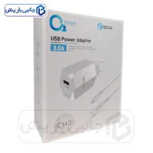 شارژر دیواری 18 واتی اکسیژن مدل CH3 همراه با کابل تایپ سی را با تضمین اصالت و سلامت فیزیکی کالا و مهلت تست 3 روزه می توانید از فروشگاه جانبی باریش با قیمت مناسب تهیه فرمایید.