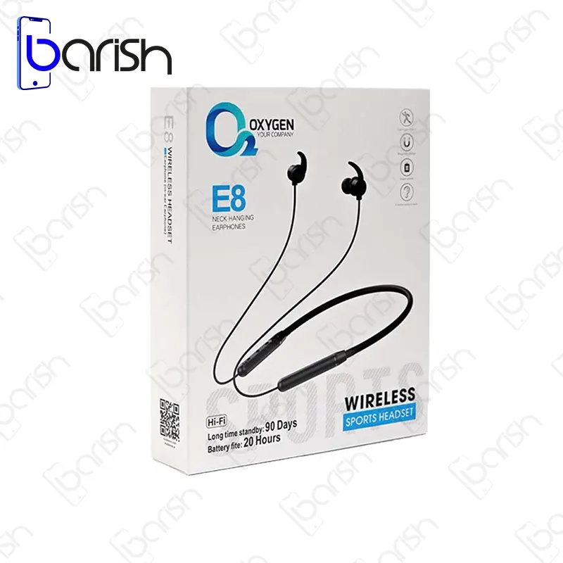 هندزفری بلوتوثی گردنی اکسیژن مدل E8 را با تضمین اصالت و سلامت فیزیکی کالا و گارانتی تست 3 روزه را می توانید از فروشگاه جانبی باریش با قیمت مناسب تهیه فرمایید.