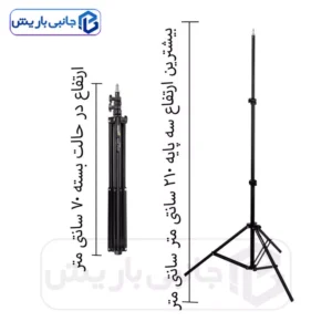 این پایه دارای حداکثر ارتفاع 210 سانتی متر است که امکان تنظیم ارتفاع را برای کاربران فراهم می کند. این امر به ویژه برای کاربردهای عکاسی پرتره و فیلمبرداری مهم است زیرا به کاربران امکان می دهد نور را به بهترین شکل ممکن روی سوژه هدایت کنند . ارتفاع این پایه در حالت بسته نیز 70 سانتی متر است که بدلیل طراحی جمع و جور و سبک امکان حمل و نقل آسان آن را فراهم می کند. این امر به ویژه برای کاربرانی که به دنبال یک پایه رینگ لایت یا دوربین قابل حمل هستند مهم است.