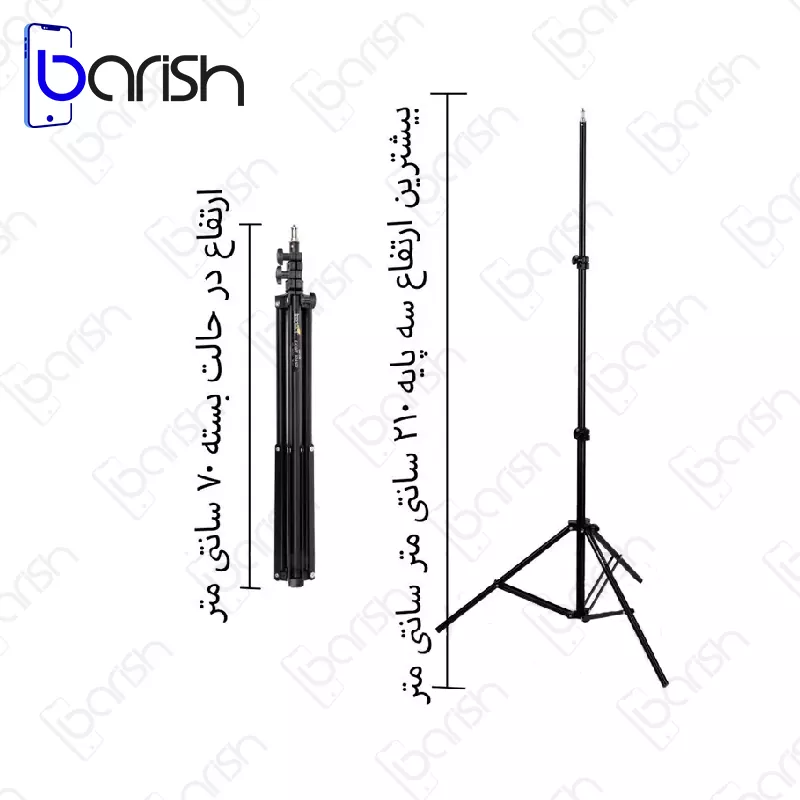 پایه رینگ لایت و دوربین پی نت با ارتفاع 210 سانتی متر را می توانید با تضمین اصالت و سلامت فیزیکی کالا و مهلت تست 3 روزه از فروشگاه آنلاین « جانبی باریش » با مناسبترین قیمت تهیه فرمایید .