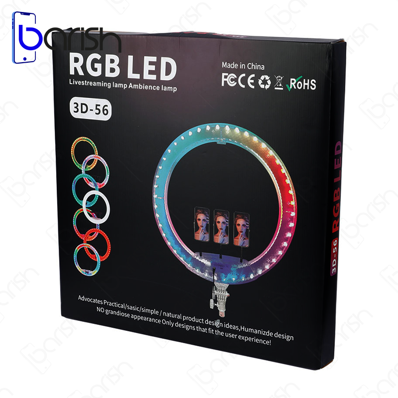 رینگ لایت 22 اینچی مدل RGB 3D-56 به همراه سه پایه اورجینال، ابزاری ایدهآل برای عکاسی، فیلمبرداری، میکاپ، لایو استریم و سایر فعالیتهایی است که نیاز به نورپردازی مناسب دارند. این رینگ لایت با قطر 56 سانتیمتر، نوری یکنواخت و مطلوب را به سوژه شما ارائه میدهد و به شما کمک میکند تا عکسها و ویدیوهایی با کیفیت حرفهای ثبت کنید.