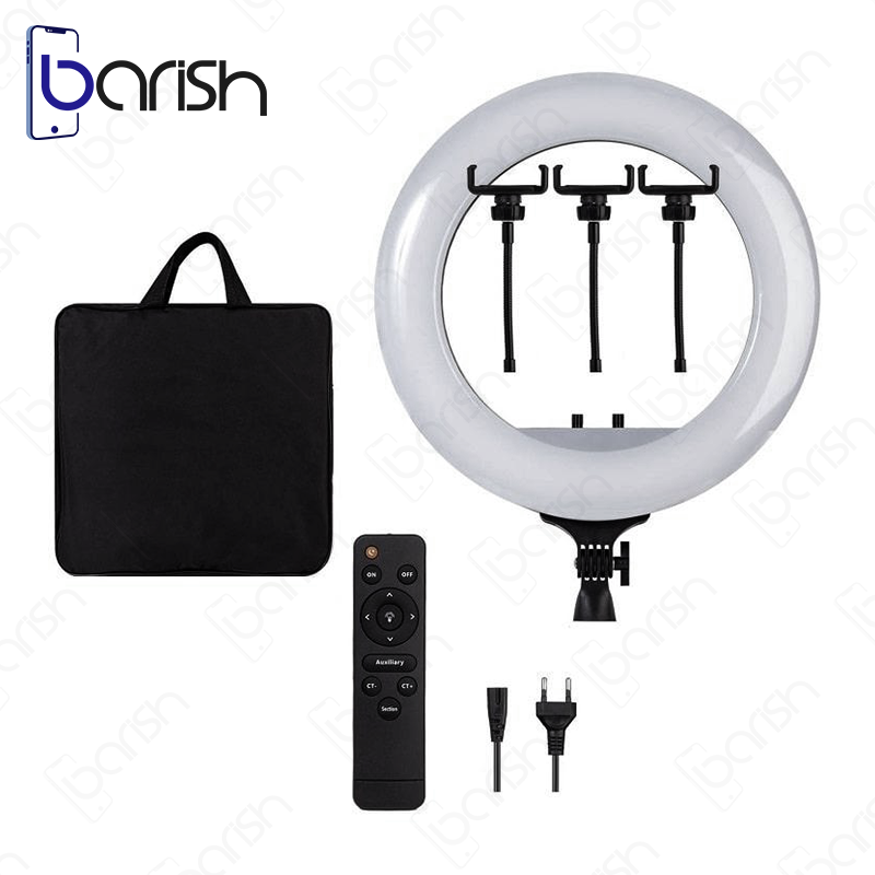 رینگ لایت 19 اینچی مدل RL-19 به همراه سه پایه اورجینال، با اقلام همراه کاملی ارائه میشود که شامل موارد زیر است: