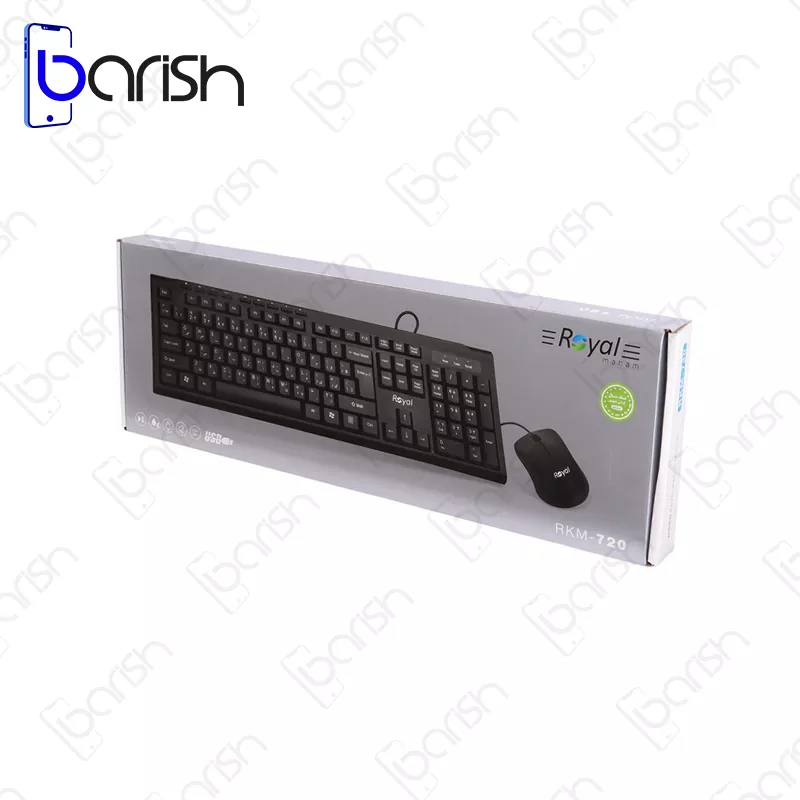 شما میتوانید موس و کیبورد سیمی رویال مدل RKM-720 را با بهترین کیفیت و قیمت مناسب از فروشگاه آنلاین « جانبی باریش » تهیه نمایید.