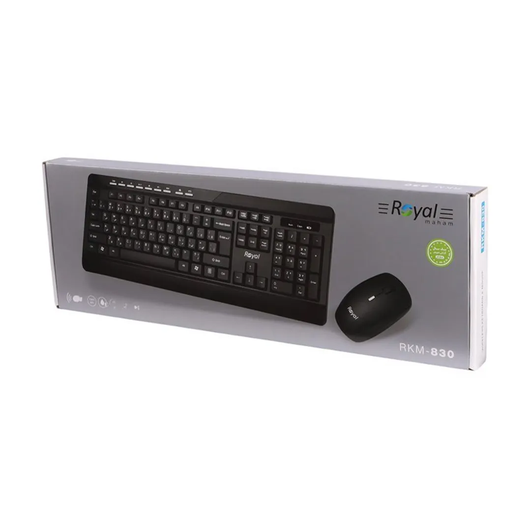 شما میتوانید موس و کیبورد بی سیم رویال مدل RKM-830 را با بهترین کیفیت و قیمت مناسب از فروشگاه آنلاین « جانبی باریش » تهیه نمایید.
