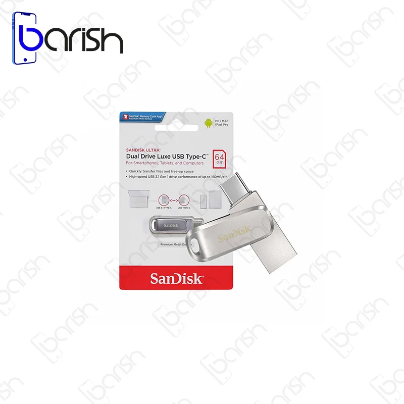 فلش مموری سن دیسک مدل Ultra Dual Drive Luxe USB Type-C ظرفیت 64 گیگابایت USB3.1 را می توانید با تضمین اصالت و سلامت فیزیکی کالا و گارانتی 3 ساله « فیدار نامدار سورین » ، از فروشگاه آنلاین « جانبی باریش » تهیه نمایید.