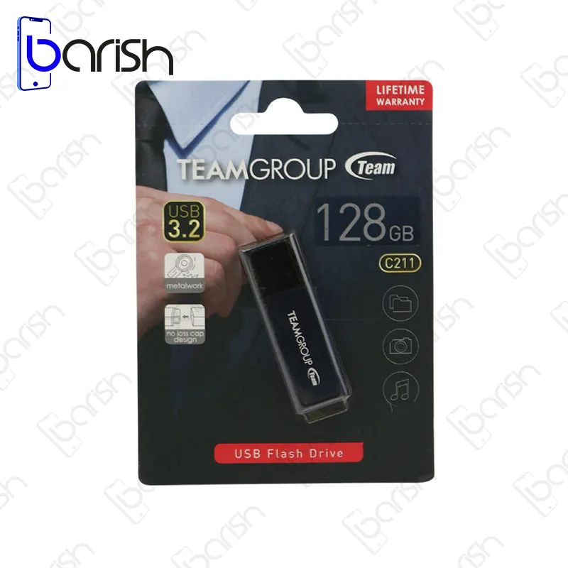 شما میتوانید فلش مموری ای تیم گروپ مدل C211 ظرفیت 128 گیگابایت USB3.2 را با بهترین کیفیت و قیمت مناسب از فروشگاه آنلاین « جانبی باریش » تهیه نمایید.