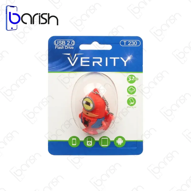 فلش مموری وریتی مدل T230 ظرفیت 32 گیگابایت یکی از جذاب تری فلش مموری های عروسکی وریتی است که در آن مینیون با لباس اسپایدرمن می باشد توجه همه افراد با طراحی خاص و ویژه اش به خود جلب می نماید.