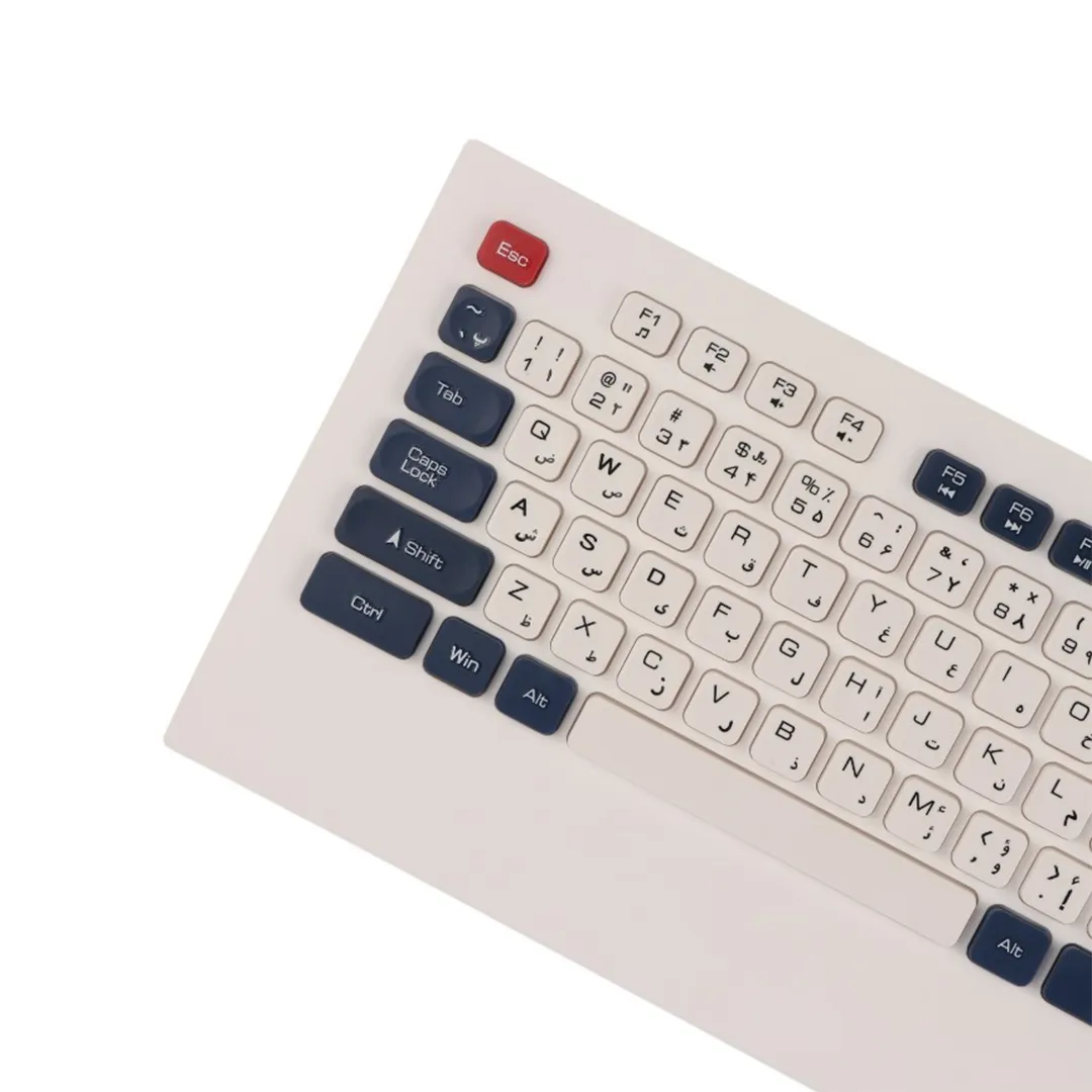 | قابلیت ها | طراحی ارگونومیک / کلیدهای بی صدا / دارای پایه و قابلیت تنظیم ارتفاع / کلید های مالتی مدیا کیبورد / قابلیت تنظیم DPI موس / چراغ نشانگر باتری ضعیف / حروف حک شده فارسی |