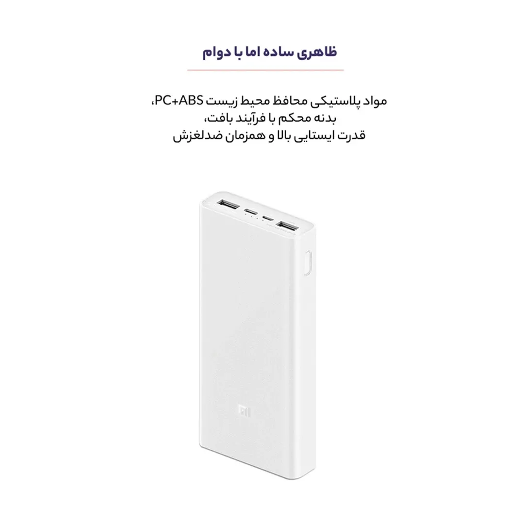 آیا به دنبال یک منبع انرژی قابل اعتماد برای گوشی هوشمند، تبلت یا سایر دستگاههای الکترونیکی خود هستید؟ پاور بانک شیائومی مدل PLM18ZM با ظرفیت فوقالعاده 20000 میلی آمپر ساعت، انتخابی ایدهآل برای شماست! این پاور بانک با طراحی زیبا،مدرن و رنگ سفید آن به آسانی با هر استایلی هماهنگ میشود و به عنوان یک همراه شیک در سفر، دانشگاه یا محل کار شما خواهد بود.